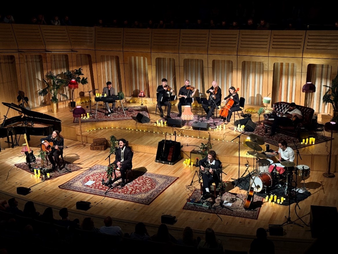 - Ishmael Ensemble yn perfformio o dan y gromen ymdrochol 360° yn CULTVR. Llun gan: 4Pi Productions