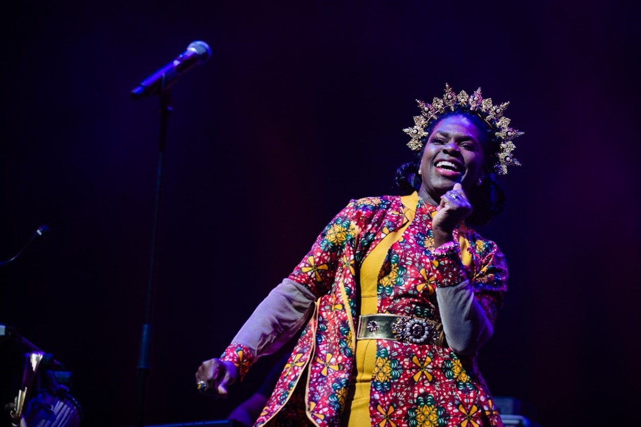 - Ibibio Sound Machine yn perfformio yng Ngŵyl Lais. Llun gan: Llais