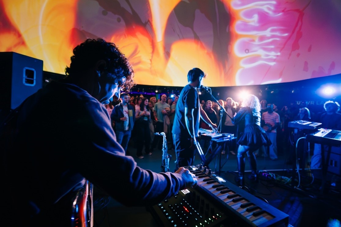 - Cynhaliodd y gromen ymdrochol 360° yn CULTVR ystod o ddigwyddiadau gwthio ffiniau. Llun gan: 4Pi Productions