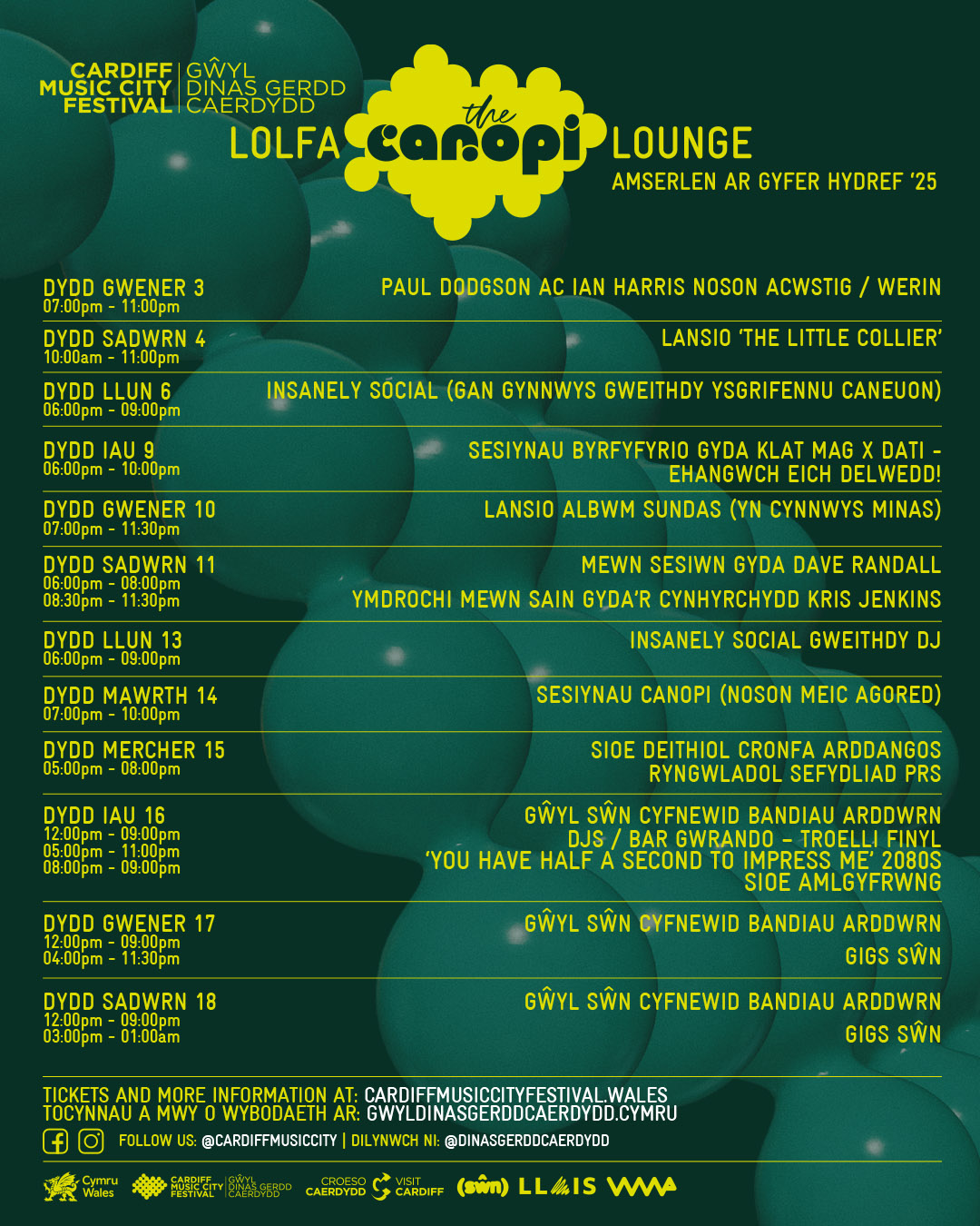 LOLFA CANOPI LOUNGE – canolbwynt Gŵyl Dinas Gerdd Caerdydd!
